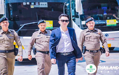 - 4月赫菲在泰国受到警车车辆开道护送的国际贵宾待遇