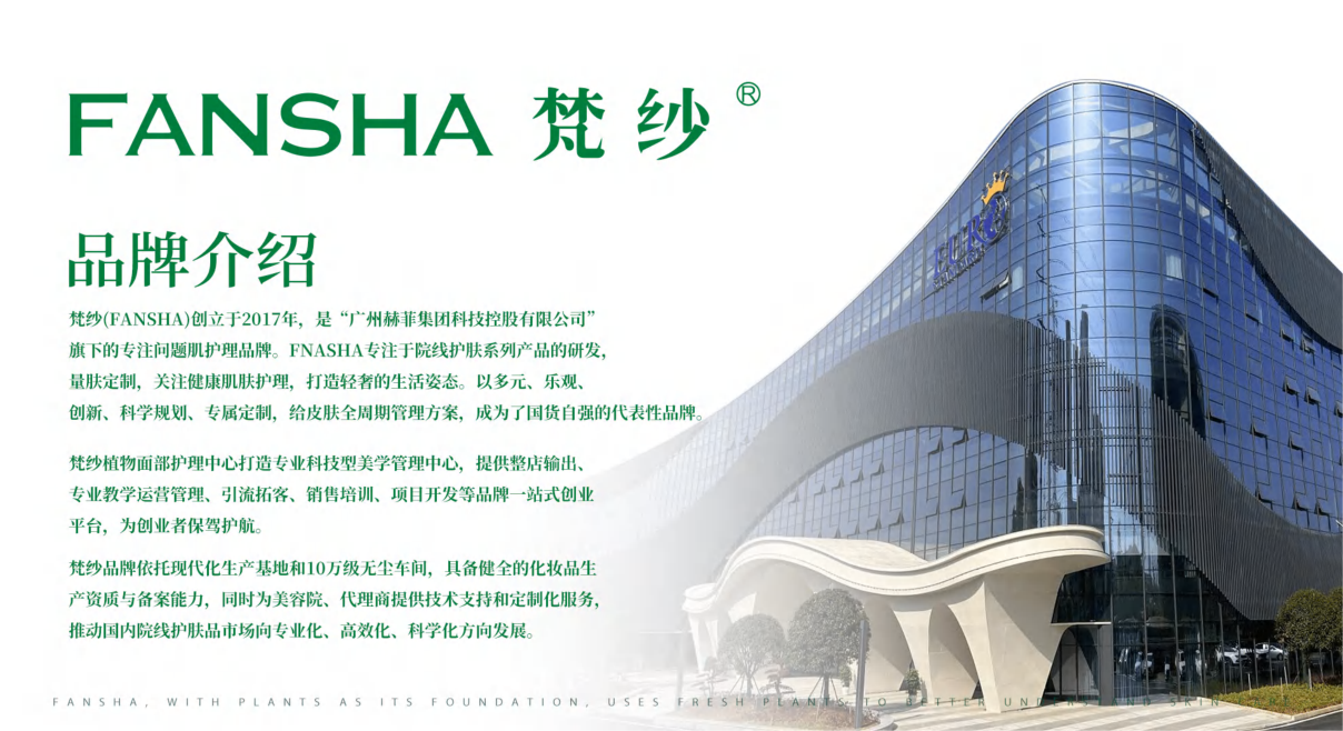 梵纱 | 以植为本,愈见原生之美 在层峦叠翠的自然深处,梵纱探寻鲜活植物的疗愈能量。我们以植萃为源,将山林间的原生生命力凝入每一瓶产品,让肌肤在自然的温柔包裹中,回归最初的健康与透亮。 从鲜活采摘到精准萃取,每一步都遵循自然节律,只为给你带来一场源于植物本真的护肤体验。 要不要我帮你再写一个更突出院线专业感的版本,让文案更契合品牌调性?